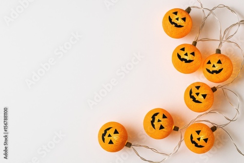 background, design, halloween, party, light, space, concept, white, autumn, happy, black, smile, blue, orange, colours, face, celebration, silhouette, holiday, colourful, modern, night, fall, pumpkin, fun, shape, new, ball, lamp, decoration, cotton, sphere, decorative, ghost, electric, string, jack-o-lantern, symbol, copy, bright, dark, evil, head, horror, october, scarey, skittish, treat, trick