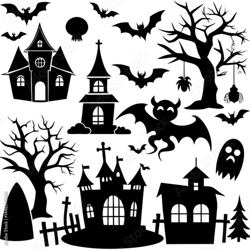 halloween, silhouette, skittish, ghost, sorcerer, bat, pumpkin, jack-o-lantern, tree, grave, gravestone, cross, skeleton, spider, spider's web, scarey, creepy, black cat, monster, eerie, night, horror, dark, shadow, trick or treat, october, autumn, dead tree, cemetery