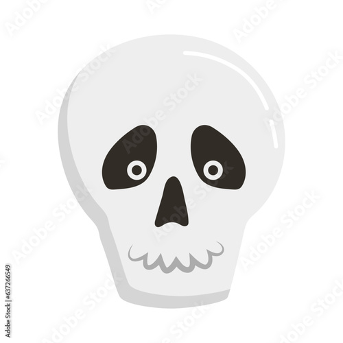Halloween skull sticker decoration, single object, vector sticker, decoration, dead human body part, creepy skull drawing.