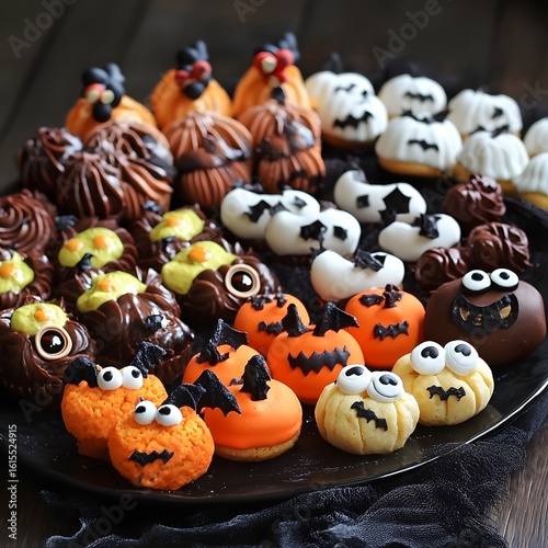 food, halloween, autumn, dessert, holiday, october, homemade, pumpkin, scarey, snack, skittish, sweet, party, treat, baked, celebration, trick or treat, bakery, fun, background, cookie, decorated, delicious, face, funny, candy, ghost, tasty, pastry, seasonal, traditional, creepy, decor, meal, decoration, horror, orange, rustic, spider, monster, festive, closeup, copy space, tradition