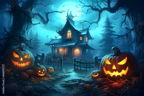 halloween, pumpkin, autumn, night, bat, horror, moon, holiday, vector, skittish, tree, illustration, dark, celebration, scarey, castle, october, house, orange, design, fear, black, cartoon, silhouette, party