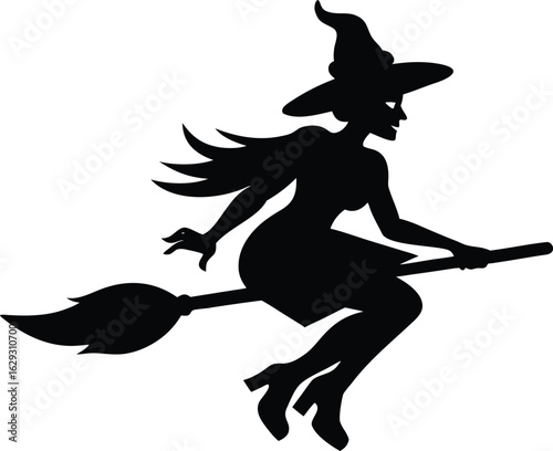Halloween witch broom silhouette clipart vector illustration for spooky decor and magical themes