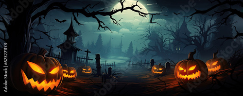Halloweens and Pumpkin, Graveyard cemetery, Spooky or scary dark Night.