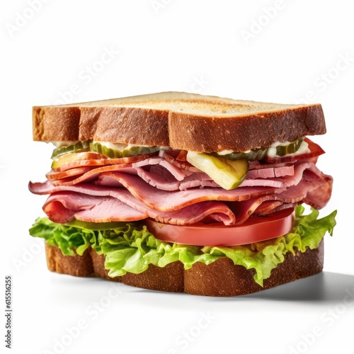 sandwich, bread, food, tomatoes, cheese, lettuce, ham, lunch, isolated, snack, healthy, meal, white, breakfast, salad, meat, vegetable, toast, fresh, green, slice, fast, brown, bacon, wheat