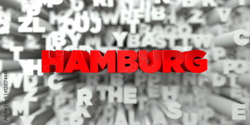 HAMBURG - Red text on typography background - 3D rendered royalty free stock image. This image can be used for an online website banner ad or a print postcard.