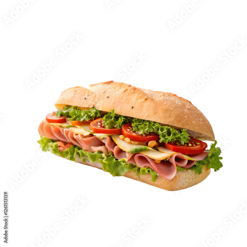 sandwich, food, bread, cheese, lettuce, ham, tomatoes, lunch, meal, snack, isolated, white, breakfast, healthy, fresh, bun, salad, burger, meat, chicken, ciabatta, vegetable, cucumber, green