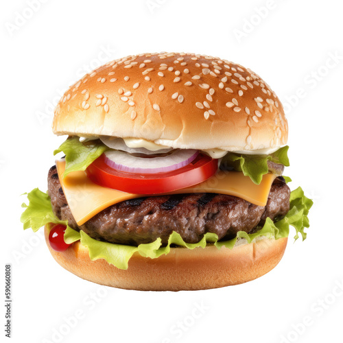 generative, ai, burger, hamburger, food, cheeseburger, cheese, beef, bread, sandwich, meat, lettuce, bun, fast, tomatoes, meal, isolated, white, dinner, lunch, grilled, fast food, unhealthy, salad, fat, big, snack