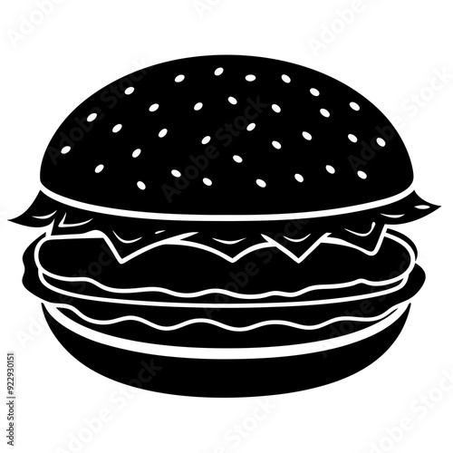 hamburger isolated on white, hamburger vector illustration, food vector art, hamburger silhouette, burger vector icon, burger cartoon line art, eps