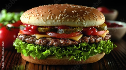 hamburger on black HD 8K wallpaper Stock Photographic Image