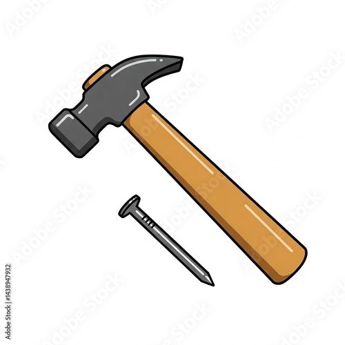 hammer, and, nail, tool, construction, repair, fix, build, metal, steel, iron, wood, carpenter's shop, bricolage, to do, information technology, yourself, studio, isolated, white, background, simple, minimalist, photo, still life, object, subject, space, empty, plain, clean, art, design, composition, shot, photo, image, picture, graphic, element, concept, symbol, abstract, modern, contemporary, visual, presentation, display, equipment