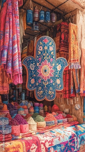 Hamsa Hand Desert Market Judaism, Islam Religion Spiritual Symbol - Generative AI
