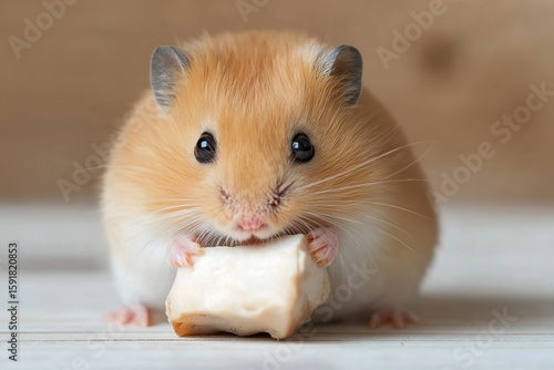 Hamster enjoying a snack; a cute, adorable and fluffy pet with furry cheeks and whiskers