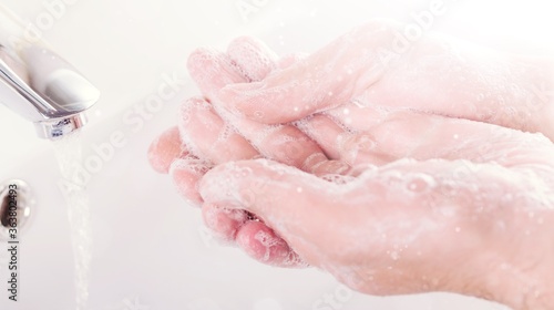hand, laundered, soap, hygiene, woman, water, tap, clean, infection, prevent, washroom, bathroom, bubble, care, cleanliness, clinic, closeup, crane, disinfect, doctor, female, finger, flow, flu, foam, health, healthy, hospital, human, hygienic