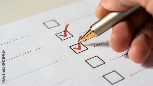 checkbox, checkmark, survey, form, paper, hand, pen, red, mark, tick, approval, decision, complete, business, office, document, signature, vote, selection, choice, administration, process, task, work, professional, closeup, detail, writing, stationery, answer, questionnaire, feedback, compliance, verification, confirmation, agreements, contract, option, yes, no, response, evaluation, assessment, inspecting, review, checklist