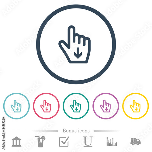 Hand cursor down outline flat color icons in round outlines
