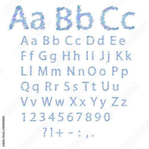 hand drawn alphabet blue color on white background. Bold capital letters.