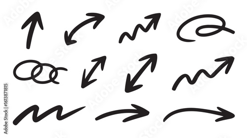 arrow, hand-drawn, direction, vignetting, design, illustration, graphic, vector, up, down, left, right, curve, squiggle, scribble, element, clip art, black, white, pointing, symbol, signs, straight, wavy, swirl, drawing, art, icon, shape, doodle, set, collection, zigzag