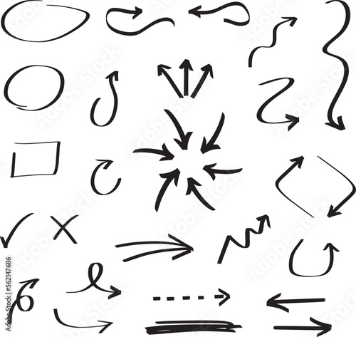 Hand drawn arrow vector icons set. sketch arrow design for business plan and education, Isolate on white background.