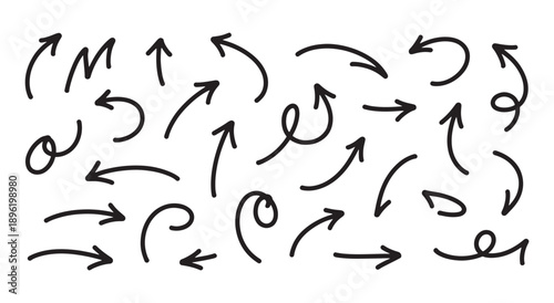 Hand drawn arrows pointing in different directions on white background