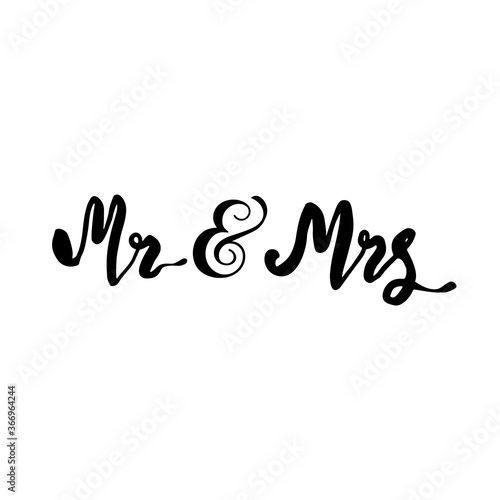 Hand drawn brush lettering text Mr and Mrs. Black hand drawn words on the white background. Vector illustration. Sketch text.