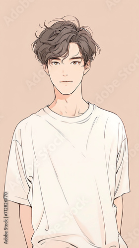 Hand drawn cartoon anime fashion illustration of handsome handsome boy