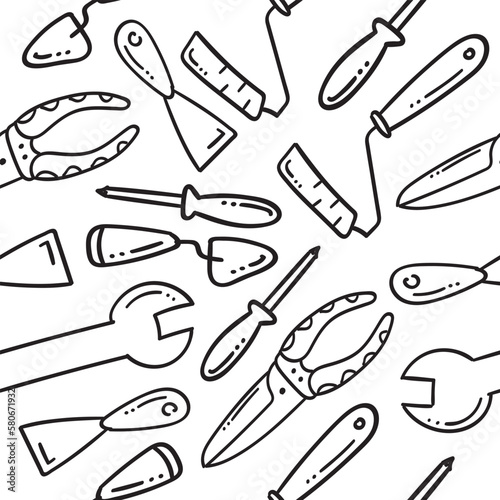 construction, building, repair, seamless pattern, tool, equipment, seamless, pattern, vector, illustration, hammer, work, brush, background, instrument, plier, set, wrench, screwdriver, drill, screw, doodle, saw, ruler, vignetting, drawing, collection, home, graphic, isolated, symbol, element, design, spanner, icon, roller, industry, service, object, drawn, outline, builder, hand-drawn, renovation, industrial, maintenance