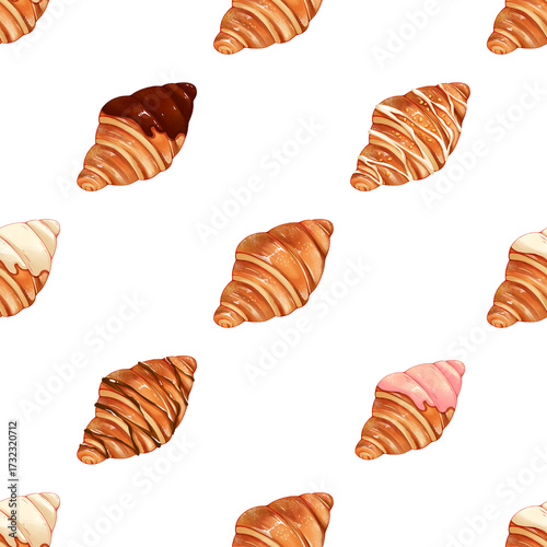 Hand Drawn Croissant Seamless Pattern Illustration with Transparent Background