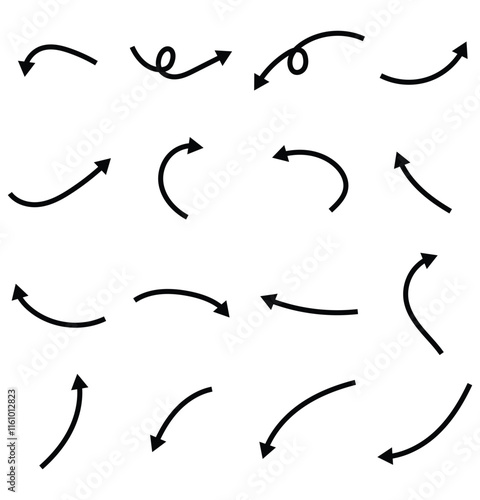 Hand drawn curved doodle arrows collection, Vector eps 10 illustration.