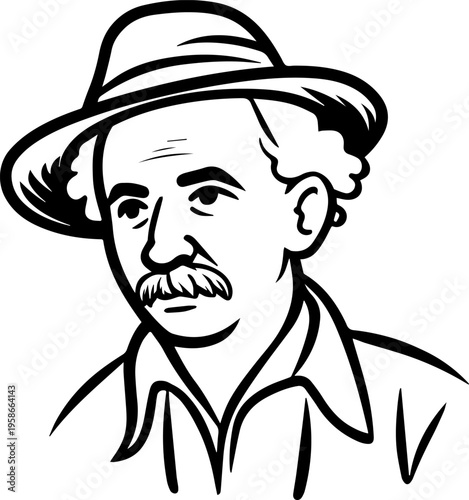 farmer, agriculture, farming, rural, countryside, field, harvest, crop, plantation, dirtied, nature, organic, men at work, labourer, occupation, job, profession, old, elderly, senior, man, male, avatar, portrait, character, illustration, hand-drawn, silhouette, shape, bold, monochrome, black, white, minimal, minimalism, simple, clean, modern, flat, vector, graphic, icon, isolated, background, digital, editable, clip art, design