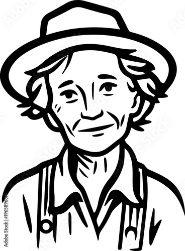 farmer, agriculture, farming, rural, countryside, field, harvest, crop, plantation, dirtied, nature, organic, men at work, labourer, occupation, job, profession, woman, female, elderly, senior, old, avatar, portrait, character, illustration, hand-drawn, silhouette, shape, bold, monochrome, black, white, minimal, minimalism, simple, clean, modern, flat, vector, graphic, icon, isolated, background, digital, editable, clip art, design