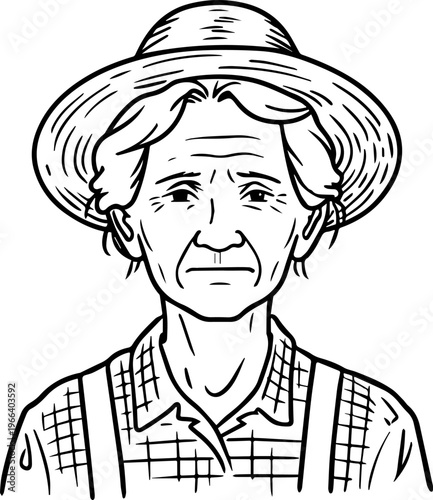 farmer, agriculture, farming, rural, countryside, field, harvest, crop, plantation, dirtied, nature, organic, men at work, labourer, occupation, job, profession, woman, female, elderly, senior, old, avatar, portrait, character, illustration, hand-drawn, silhouette, shape, bold, monochrome, black, white, minimal, minimalism, simple, clean, modern, flat, vector, graphic, icon, isolated, background, digital, editable, clip art, design