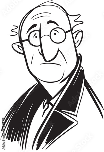Hand Drawn Elderly Male Doctor Black and White Illustration in Minimal Line Art Style Design