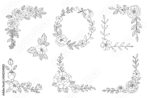 Hand Drawn Floral Corner Borders and Wreaths vector