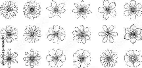Hand Drawn Flower Outline Set with Various Floral Shapes Botanical Line Art Vector Illustration Collection Isolated Design