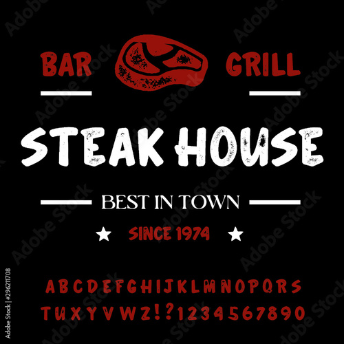 font, steak, typography, alphabet, letter, typeface, number, signs, hipster, headline, vintage, rudiments, art, modern, poster, simple, logotype, style, eat, type, graphic, design, word, bar-b-q, set, trendy, painter, crafted, draw, vignetting, display, decor, decoration, alphabetical, typographic, pop, grill, youth, culture, artistic, colours, brush, textured, culinary, roast beef, written, handwritten, hand-made, cow