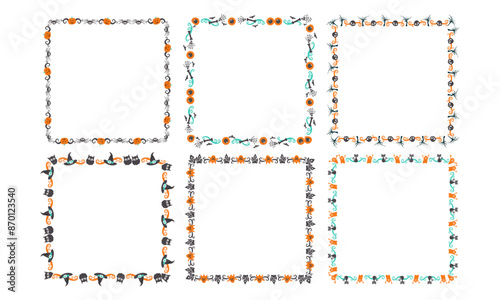 halloween, skittish, all, scarey, saint, celebration, template, frame, festival, party, ghost, event, terror, creepy, pumpkin, drawn, spider's web, bat, spider, border, vector, vintage, illustration, design, card, pattern, set, paper, stamp, photo, decoration, blank, album, art