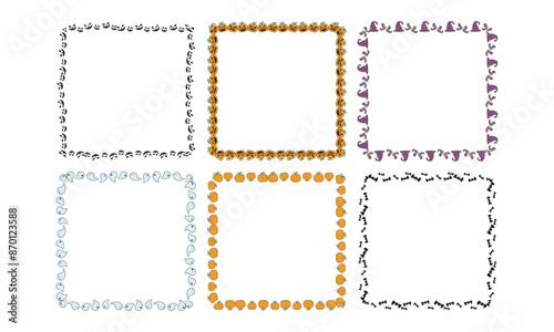 halloween, skittish, all, scarey, saint, celebration, template, frame, festival, party, ghost, event, terror, creepy, pumpkin, drawn, spider's web, bat, spider, border, vector, design, stamp, illustration, vintage, set, blank, pattern, paper, card, decoration, ornament, photo, art