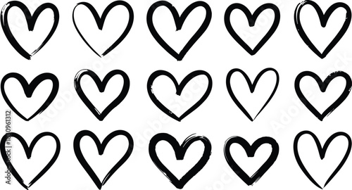 Hand drawn heart illustration set with cute love doodles and sketch shapes