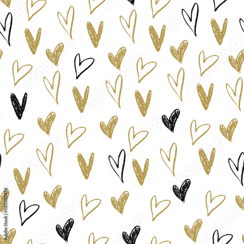 Hand Drawn Heart Pattern for Valentine`s Day. Seamless Pattern with Grunge Hearts. Cute Vector Illustration for Valentine`s Day. Love Symbol Print Trendy Template for Modern Graphic Design.