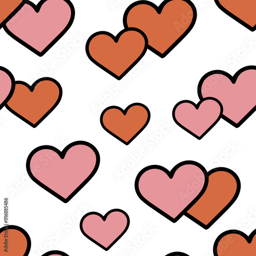 Hand Drawn Heart Seamless Pattern. Love Doodle Tile. Valentine Background. Heart Seamless Illustration.