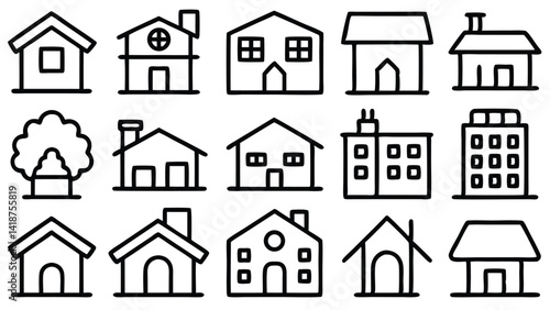 Hand Drawn House Icons Collection Simple Line Art