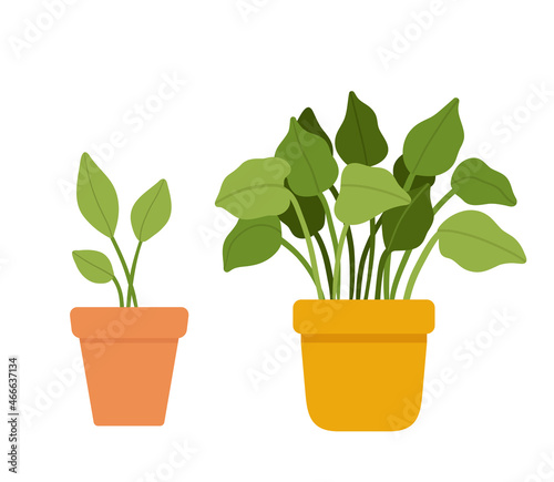 Hand drawn house plants in pots. Vector illustration in flat style isolated on white background