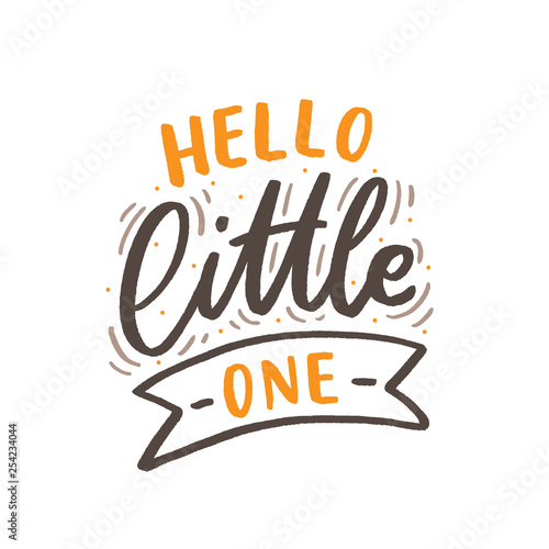 Hand drawn lettering hello little one for baby print, textile, card, poster. Vector isolated kid's print.