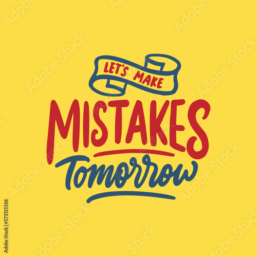 Hand drawn lettering inspirational quote. Let's make mistakes tomorrow. Typography motivational quote design.