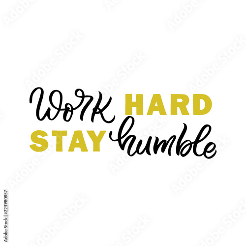 Hand drawn lettering phrase. The inscription: Work hard stey humble. Perfect design for greeting cards, posters, T-shirts, banners, print invitations.