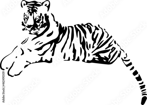 Hand drawn lying tiger. Chinese symbol of the New Year 2022.