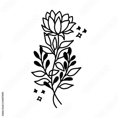 Hand drawn monochrome flower plant, leaf, and foliage element for wedding invitation, floral logo, symbol, greeting cards, decor, botanical icon, or banner. Summer, spring, and autumn botany element