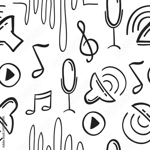 illustration, vector, doodle, background, pattern, drawing, seamless, vignetting, music, design, cartoon, drawn, graphic, wallpaper, textile, art, vintage, wrapping, tile, isolated, texture, childish, cute, funny, celebration, symbol, paper, sketchy, set, note, clip, sound, element, hand-drawn, seamless pattern, microphone, audio, musical, technology