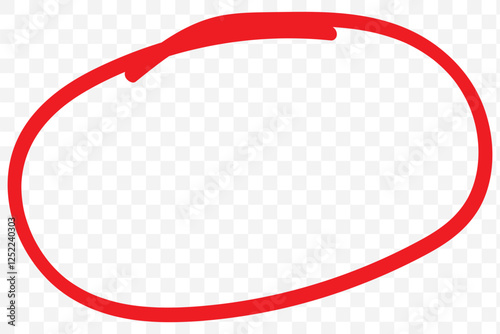 Hand drawn red circle mark. Emphasis, check, important concepts. Flat decorative vector design isolated illustration. Eps 10.