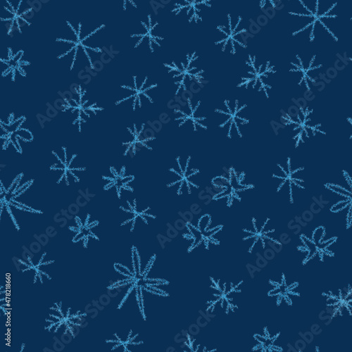 Hand Drawn Snowflakes Christmas Seamless Pattern. Subtle Flying Snow Flakes on chalk snowflakes Background. Admirable chalk handdrawn snow overlay. Splendid holiday season decoration.